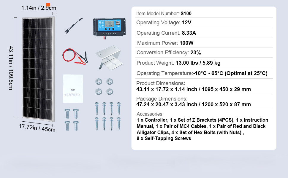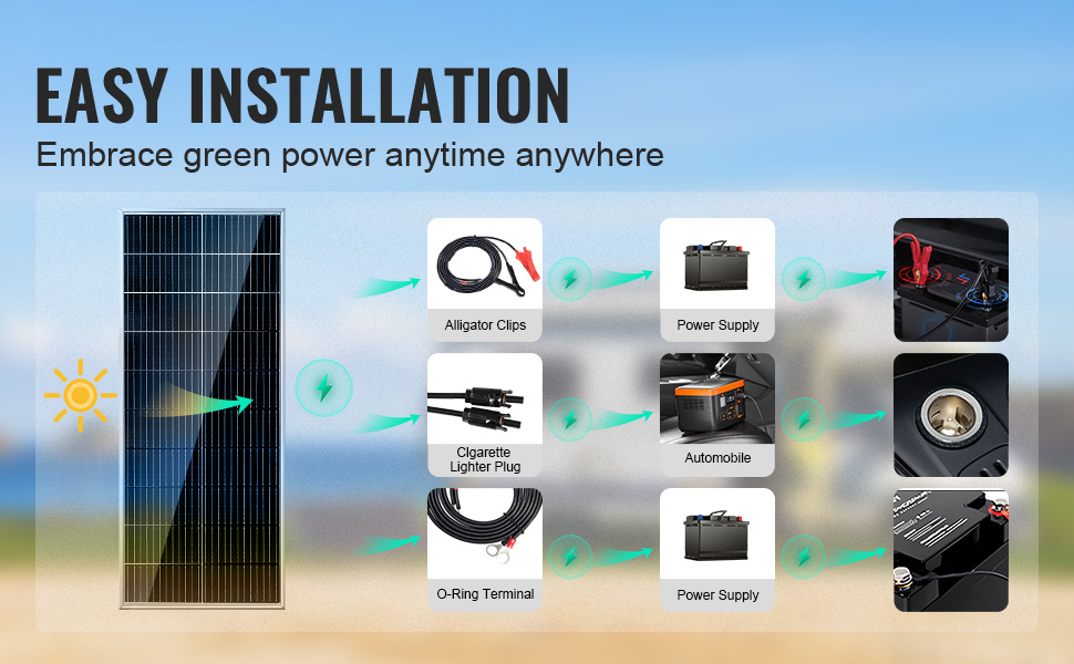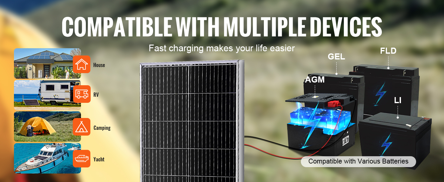 - Verbesserung Ihrer Energieversorgung: Nutzen Sie die Kraft des 100 W monokristallinen Solarmodul-Kits, das perfekt für Häuser, Wohnmobile, Camping oder Yachten ist. Ob als Notstromversorgung zu Hause oder zum Aufladen Ihres Fahrzeugs unterwegs, Sie brauchen nicht mehr zu warten - Ihre Geräte bleiben mit Strom versorgt!