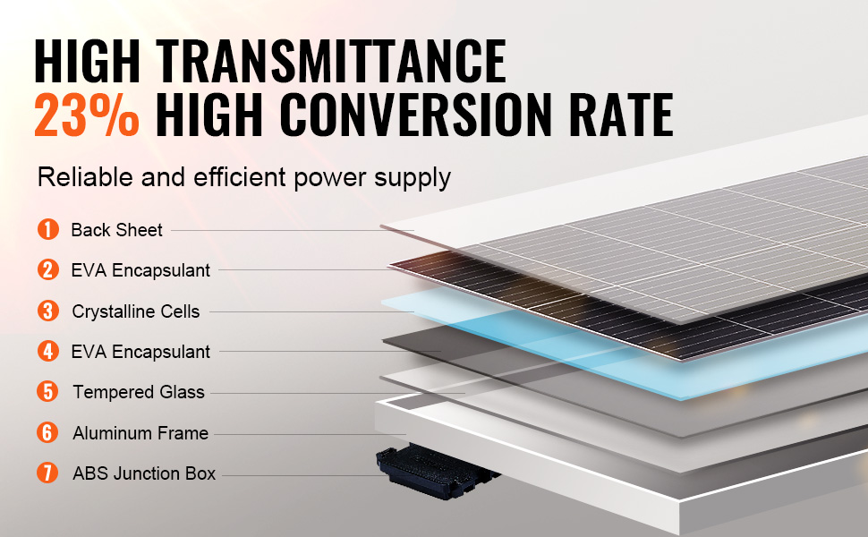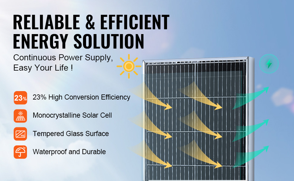 - Hervorragende Energieumwandlung: Unser monokristallines PV-Modul wird von monokristallinen Solarzellen mit hoher Durchlässigkeit angetrieben und bietet eine hohe Energieumwandlungsrate von 23 %. Es ist die perfekte Stromquelle für verschiedene extreme Bedingungen und gedeiht bei Temperaturen von -10℃ bis 65℃ (optimal bei 25℃).