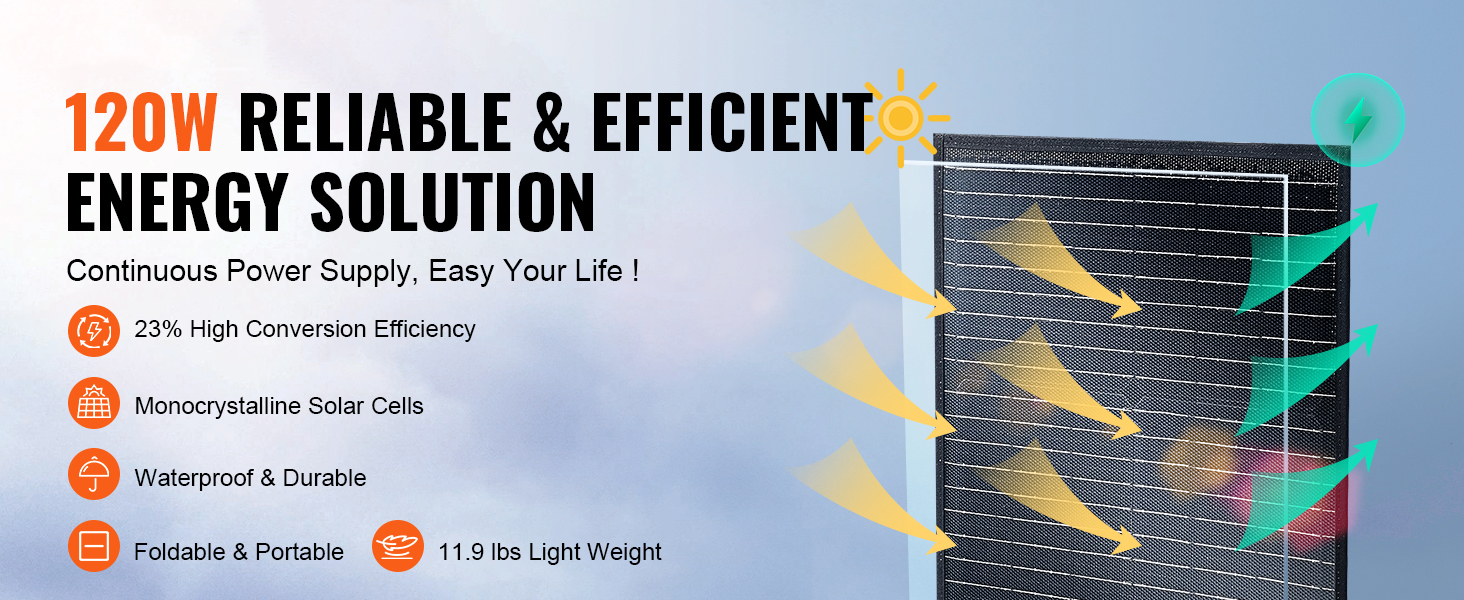 - 120 W hocheffiziente Leistung: Entfesseln Sie die Kraft von 120 W mit dem tragbaren monokristallinen Solarmodul von. Mit einer hohen Energieumwandlungsrate von mehr als 23 % erfüllt es schnell den Ladebedarf Ihrer Geräte. Ob zu Hause oder unterwegs, erleben Sie effizientes Laden, das Sie mit Strom versorgt.